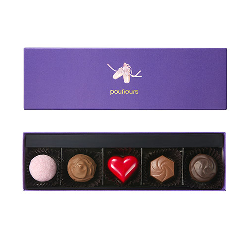 ティーハート、ラム、グランマニエ、フランボワーズ、キャラメルブールサレの5種類。